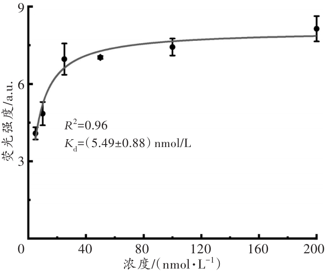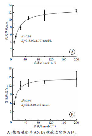 目的 利用能同时识别氯胺酮及其代谢物去甲氯胺酮的核酸适配体,构建核酸适配体羧基化氧化石墨烯(carboxylated graphene oxide,CGO)荧光传感器,实现氯胺酮及去甲氯胺酮的高灵敏、高特异性检测。 方法 采用氧化石墨烯-指数富集配体系统进化技术(graphene oxide-systematic evolution of ligand by exponential enrichment,GO-SELEX)结合分子对接技术筛选出能同时识别氯胺酮及去甲氯胺酮的特异性核酸适配体。将适配体标记Cy5荧光并通过化学偶联反应与CGO结合,构建核酸适配体功能化CGO荧光传感器。通过优化CGO质量浓度、核酸适配体浓度、反应温度及孵育时间等检测条件,利用加入靶标前后的荧光强度变化比率实现目标物的定量分析。通过检测传感器在空白血液、尿液中荧光强度随孵育时间的变化,评估其与传统物理吸附CGO荧光传感器在生物检材中的稳定性;通过空白血液、尿液加标回收实验,比较其与HPLC-MS/MS的检测性能。 结果 筛选得到特异性核酸适配体A5,并与CGO化学偶联构建荧光传感器。在优化条件下,该荧光传感器对氯胺酮的线性检测范围为1.0~5.0 ng/mL,检出限(limit of detection,LOD)为0.86 ng/mL;对去甲氯胺酮的线性检测范围为1.0~5.0 ng/mL,LOD为0.70 ng/mL。与物理吸附构建的CGO荧光传感器相比,本传感器在血液、尿液中表现出更高的生物稳定性。空白血液、尿液中氯胺酮及去甲氯胺酮的加标回收率为81.50%~110.03%,表现出与HPLC-MS/MS相当的检测性能。 结论 核酸适配体筛选方法可为毒(药)物原体及其代谢物的适配体筛选提供新的思路,所构建的核酸适配体功能化CGO荧光传感器可为氯胺酮及去甲氯胺酮的高效、可靠检测提供新方法。