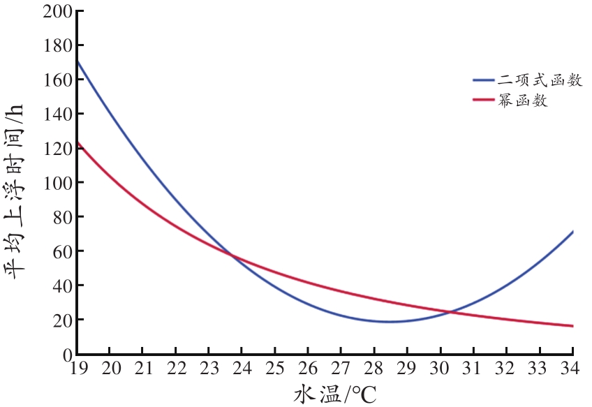 | 图2 水中尸体平均上浮时间随水温变化趋势拟合曲线 |