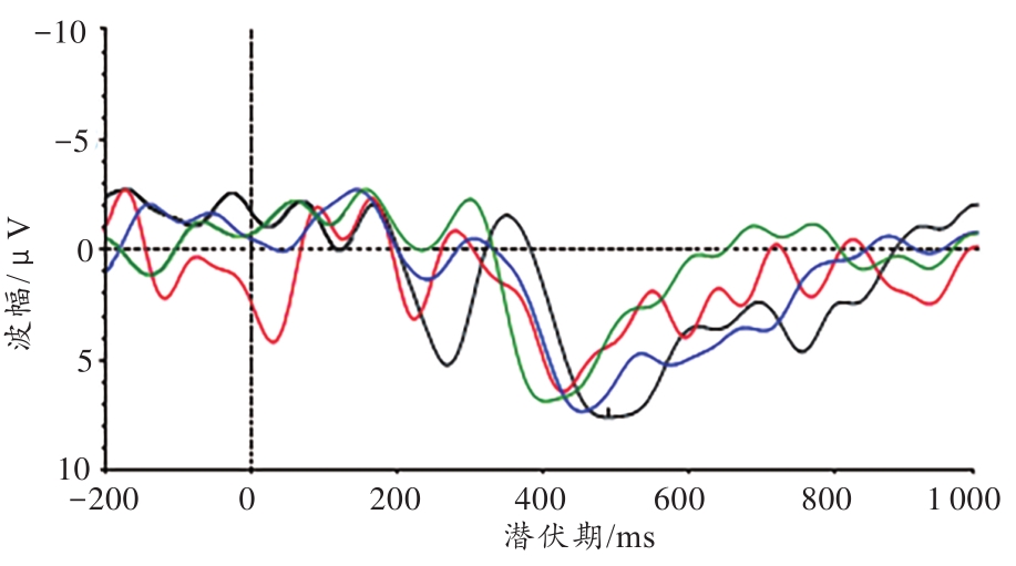 | 图3 Nogo-P3的波形图 黑色表示1°15′,蓝色表示55′,红色表示24′,绿色表示15′。 |