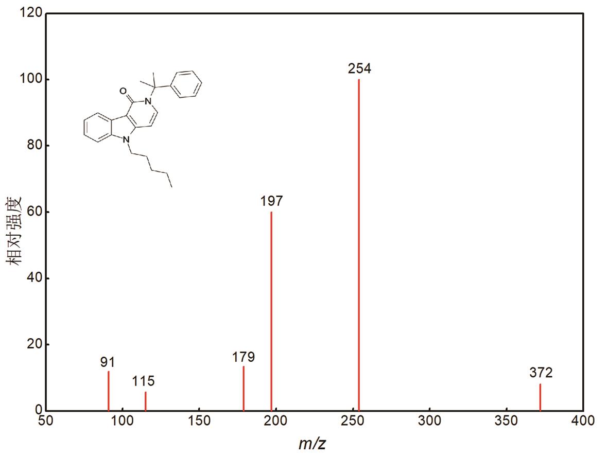 | 图3 CUMYL-PEGACLONE的GC-MS及化学结构图 |